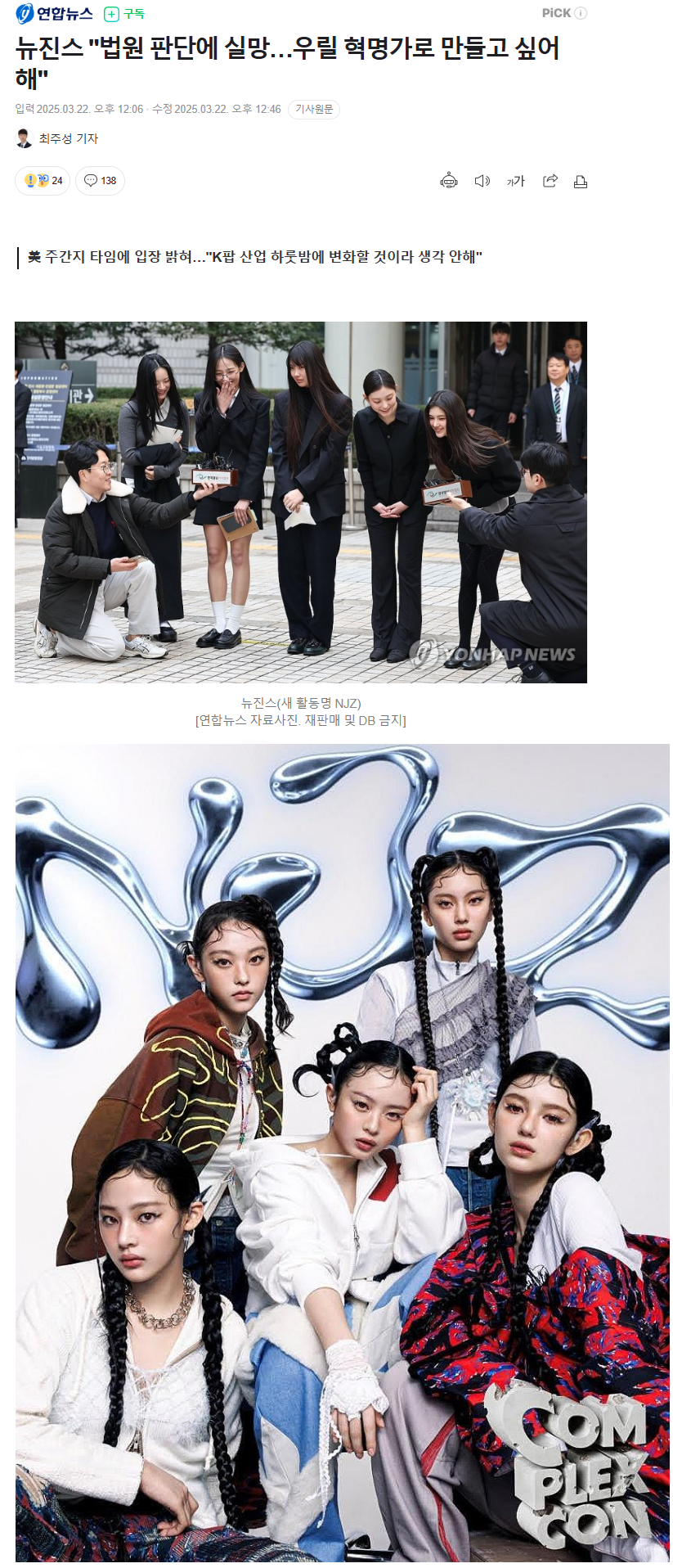 이들의 말처럼 멤버들은 23일 홍콩에서 열리는 ‘컴플렉스콘’에 출연할 예정이다. 어도어 측은 가처분 인용 후 “홍콩 ‘컴플렉스콘’은 어도어 소속 뉴진스의 이름으로 진행되도록 현장에서 충분히 지원할 예정”이라고 밝혔다.